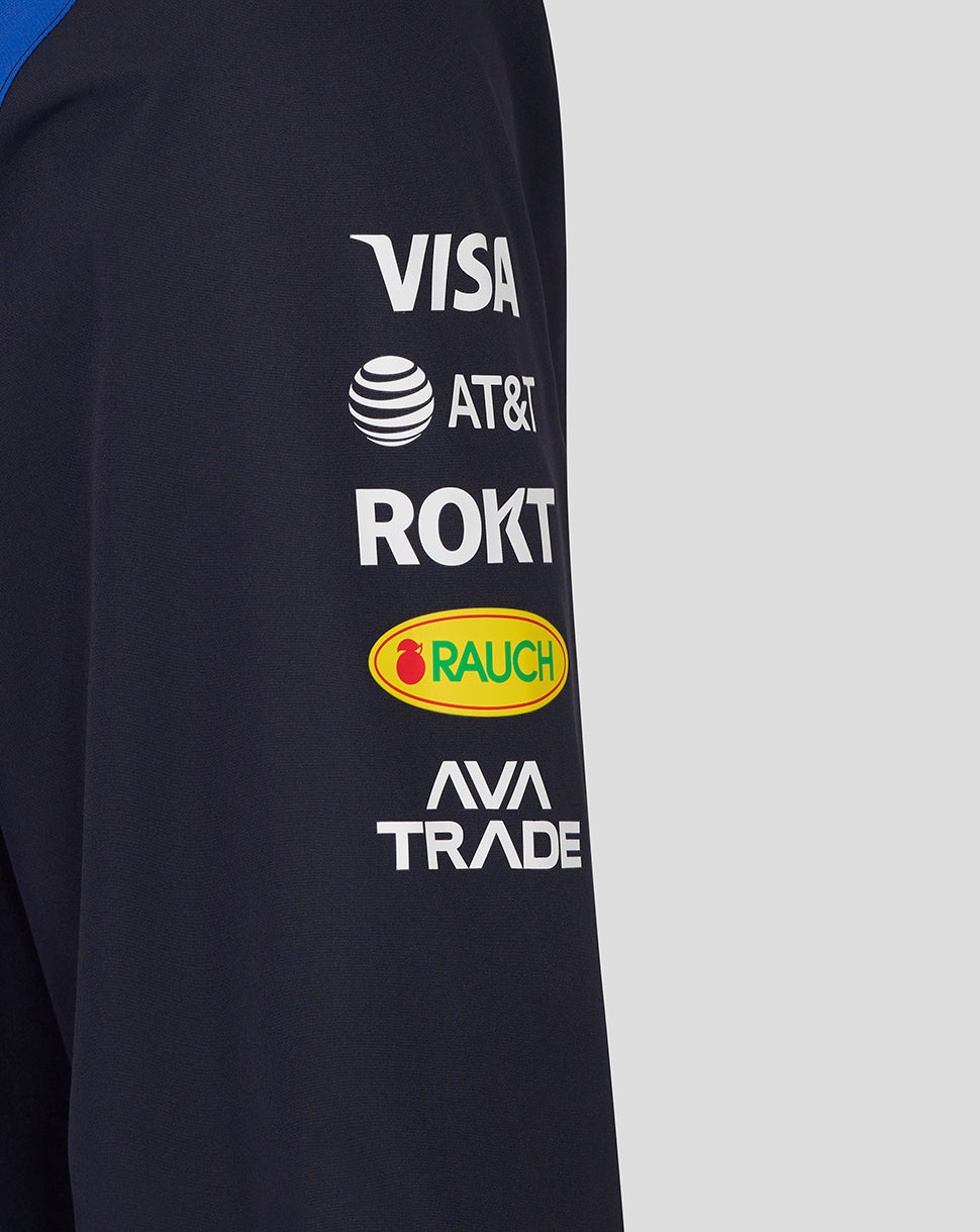 Defy race day rain in the Oracle Red Bull Racing 2026 Teamline Long Sleeve Water Resistant Jacket. Engineered with ProTek technology for a durable water repellent finish and a peaked hood for added protection, it provides reliable coverage in heavy showers. Finished in a modern colourway, the jacket combines style with bold Oracle Red Bull Racing branding.