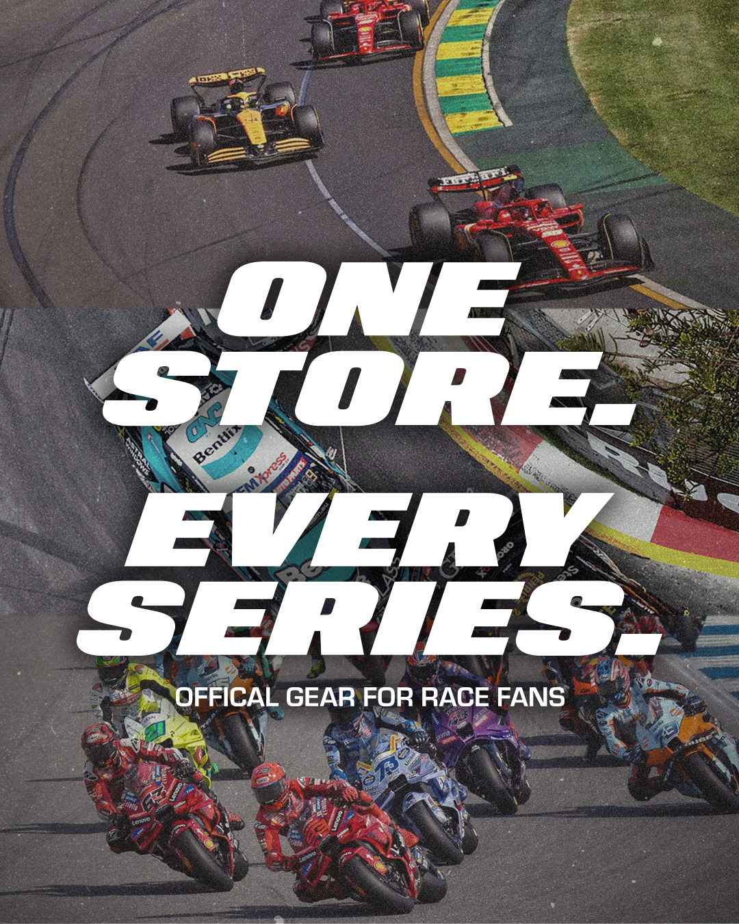 Discover a vast range of apparel, accessories, and collectibles bearing the iconic insignias of Formula 1®, Ford, Supercars, & more.